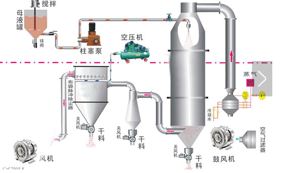 高壓風機以這樣的形式運用于烘干設備中的時候,不僅兼顧了負壓操作的優點,又避免了由于大的負壓操作,使空氣漏入系統中,選成干燥效率降低的缺點,同時,微負壓操作又可保證粉塵回收裝置具有最高的回收率。