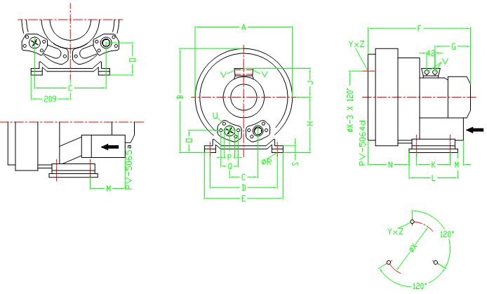 德冠品牌高壓風機尺寸表: